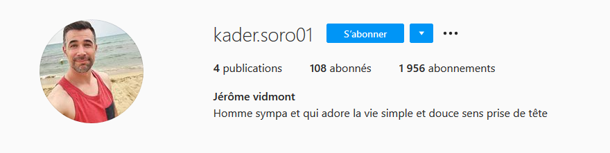 Vrai profilFaux profil signalé en tant qu'usurpation d'identitéet répertorié dans la liste d'InstagramEn collaboration avec Marilyne qui a bloqué celui-ci.